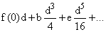 This means that if we mix two parts of the midpoint rule and one part of the trapezoid rule, we will get the quadratic b term exactly right, and the leading term in the error will come from the e term which will be on the order of d4.