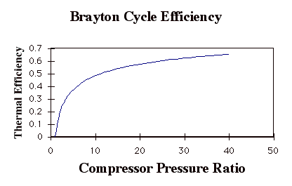 In the plot above, TR = T3/T1. Note that for a given turbine inlet temperature, T3, (which is set by material limits) there is a compressor pressure ratio that maximizes the work.