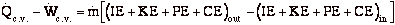 If we divide through by the mass flow and set the inlet of the control volume as station 1, and the outlet as station 2, then