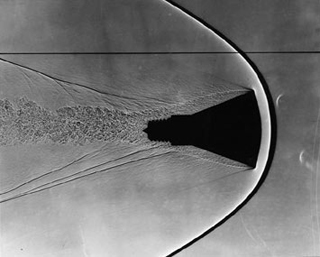 A model of a Mercury capsule captured by highspeed cameras, showing the forward pressure shockwave and the wake. (Image is taken from NASA's web site: http://www.nasa.gov.)