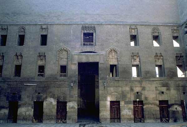 (1243) First madrasa in Cairo to accommodate the four schools of law. Built in the heart of the Fatimid city, it was composed of two separate, self-contained courtyard units, parallel in plan, separated by a passage, and having each two large iwans. A mausoleum for the founder was added shortly after the completion of the complex by Shajar al-Durr, his wife.
