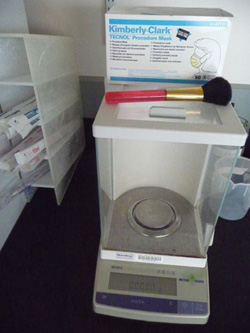 - Clean the balance with a brush. Clean the area around the balance with a wet paper towel.