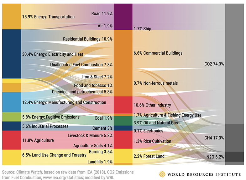 Figure S11.1 Global greenhouse emission contributions in 2016, by economic sector (World Resources Institute, Accessed August, 2020).
