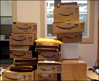 A plethora of packages from online retailer, Amazon.com were delivered to an office. (Image courtesy of Public.Resource.org on Flickr. License: CC BY.)