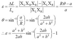 Before forming a blister, the profile of the film is along XLXR in Fig. 3. However, after forming a blister, the film profile is along XLXHXR. Therefore, the length of film along x or y direction is stretched from |XLXR| to |XLXHXR|. As a result, the strain along x or y direction is