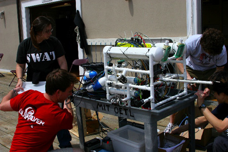 Labs 7-14 are devoted to the final project, in which students design and build an ROV outfitted with the necessary instrumentation to map and investigate a simulated hydrothermal vent field in a pool. This project will give students a chance to collect data about the field from the sensors they build themselves. After the pool trials, students will venture to WHOI to "field test" our ROV.
