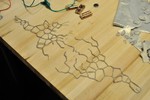 The exploration was an attempt to 'give shape' to an otherwise completely malleable material by using it in conjunction with a slender but rigid armature. The result is a lamp fixture where the silicone canopy / light is given a hyperbolic paraboloid form (and powered) by its acrylic stand.