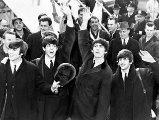 The Beatles arrive at JFK Airport in 1964 for a press conference. (Image is in the public domain. Source: Wikimedia Commons.)
