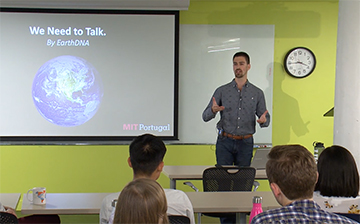 Brandon Leshchinskiy giving the Climate 101 presentation to students at MIT.